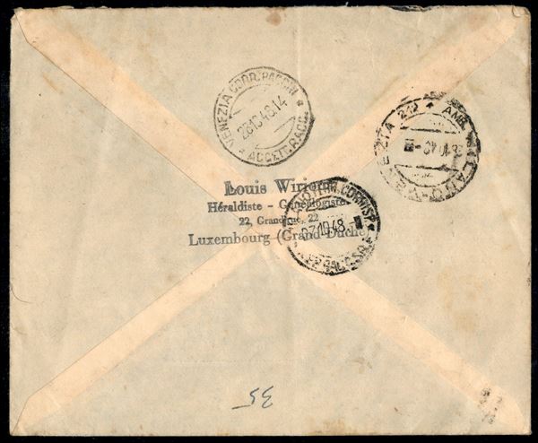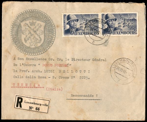 3,50 franchi Patton (424) - coppia su raccomandata per Venezia del 26.10.48
