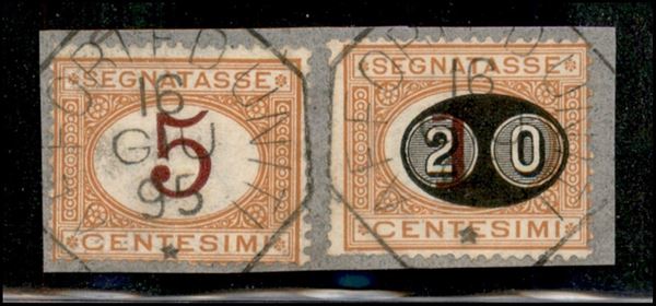 5 cent (20) + 20 cent su 1 (18) con soprastampa spostata - usati su frammento da Affori del 16.6.95