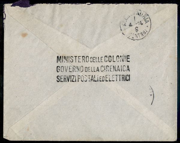 5 cent (3) + 10 cent (4) - busta "con fotografia" (manoscritto a lato) da Bengasi a Alessandria del 27.3.1914