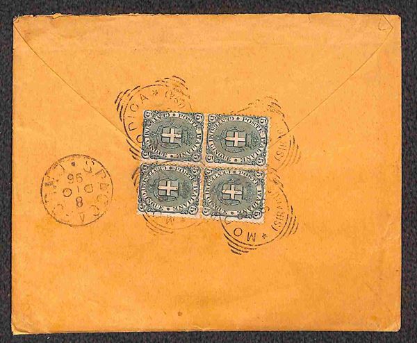 5 cent (59) in quartina al retro di busta da Modica a Spaccaforno del 8.12.96 (300)