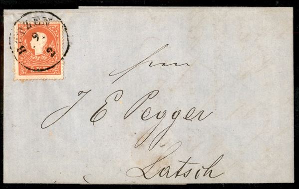 5 kreuzer (13 I) su lettera da Botzen a Latsch del 9.2.1859