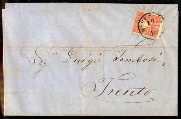 5 kreuzer (13/I) su lettera da Rovereto a Trento del 29.1.1859