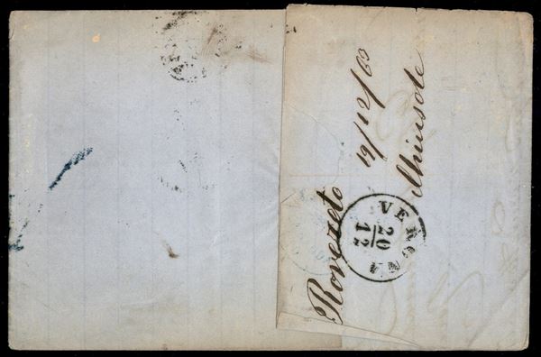 5 kreuzer (26) su lettera da Rovereto a Verona del 19.12.1863 - Distribuzione I (in arrivo a lato)
