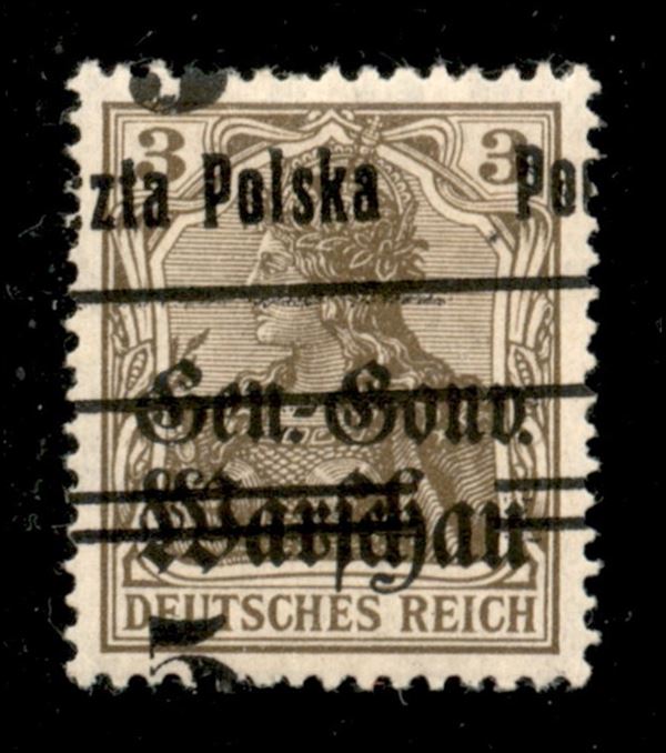 5 pfennig su 3 (15 varietà) con nuova soprastampa obliqua a cavallo - gomma originale