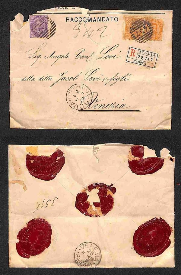 50 cent (42) + coppia del 20 cent (39) - raccomandata da Padova a Venezia del 27.11.85