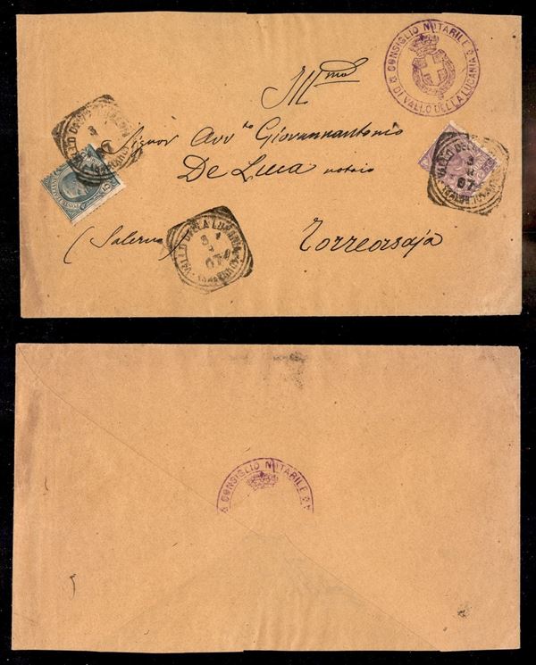 50 cent Floreale (76) + 5 cent (81) - busta da Vallo Lucania a Torreorsaia del 3.8.07
