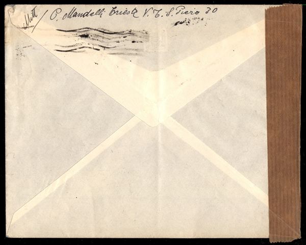 50 lire Democratica (16) + 5 lire Democratica (59) - uso misto su busta per Vienna del 9.1.50