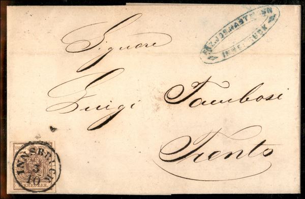 6 kreuzer (4y) su lettera da Insbruck a Trento del 3.10.1857