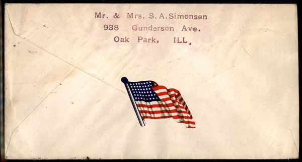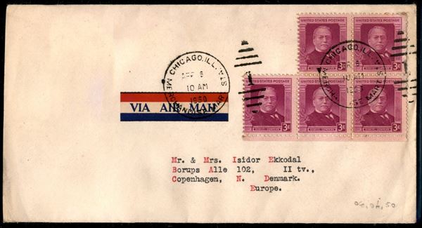 Aerogramma da Chicago a Copenhagen del 6.4.1950 - bandiera al retro (adesivo chiudilettera)