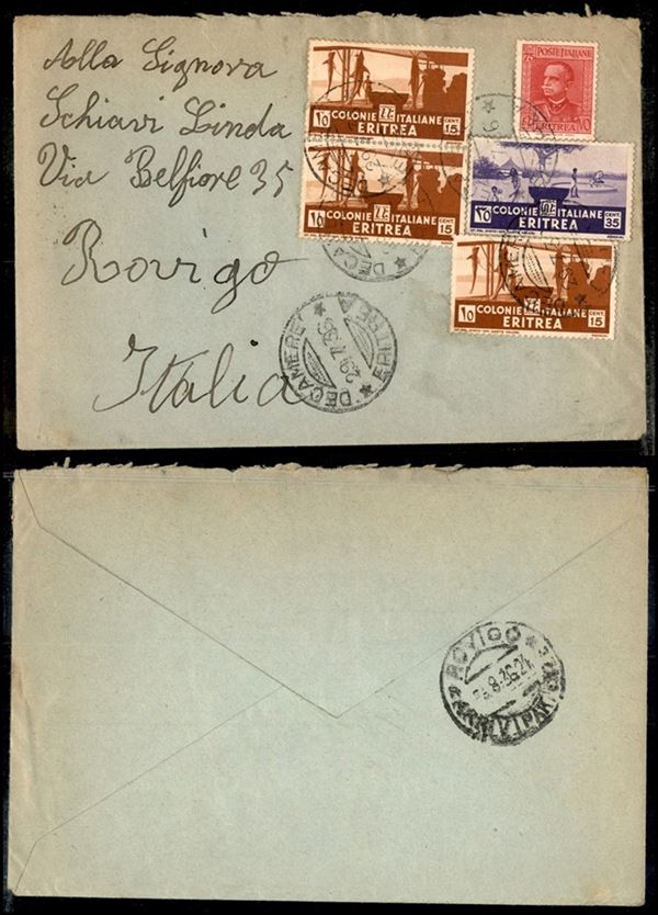 Aerogramma da Decamere a Rovigo del 29.7.36 (200 + 206 coppia + 208)