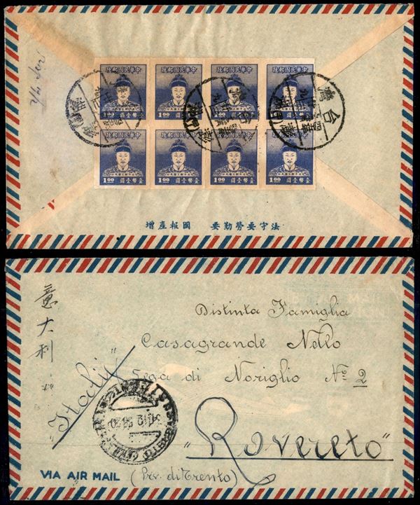 Aerogramma per Rovereto del 31.12.56 (121 blocco di otto)