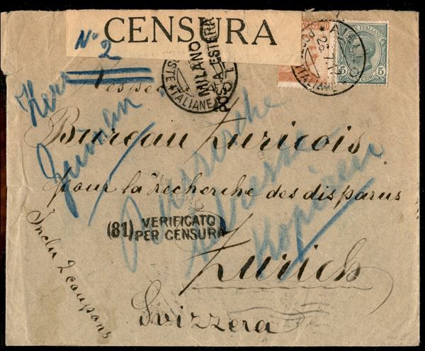 Aiello Poste Italiane - 5 cent Leoni (81) + 20 cent Michetti (109) su busta per Zurigo del 26.7.17 - censure
