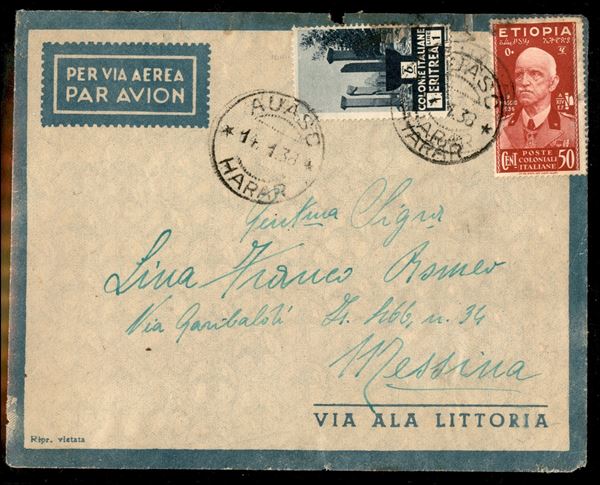 Auasc - aerogramma per Messina del 14.1.36 (5 + 209 Eritrea)