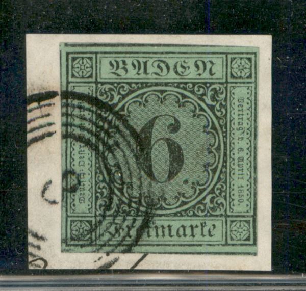 Baden - 1852 - 6 kreuzer Cifra (3b) - usato su frammento