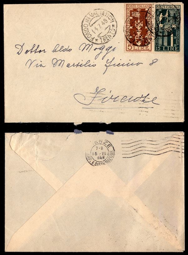 Biennale (594 + 595) - busta da Fondo a Firenze del 14.7.49