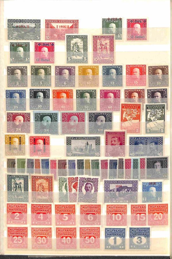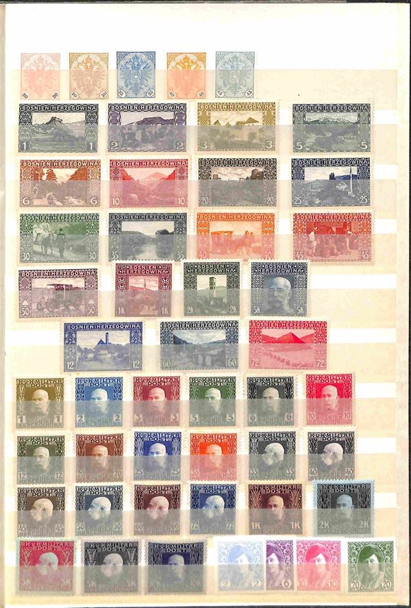 Bosnia Erzegovina - 1901/1918 - Insieme di serie complete e valori del periodo montati in una pagina di raccoglitore - gomma originale
