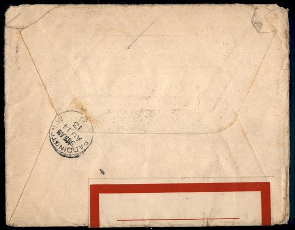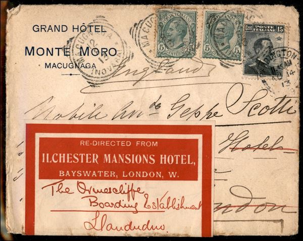 Busta da Macugnaga a Londra del 12.8.1913 con etichetta d'inoltro