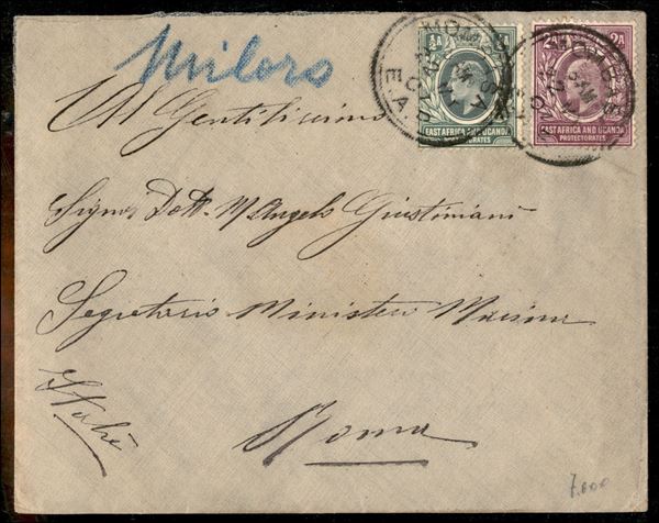 Busta della R.N."M.A. COLONNA" da Mombasa (E.A.P) a Roma del 22.5.1907