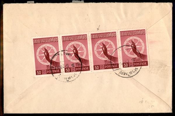 Busta per Bologna con striscia di quattro del 50 santangs (336) a chiudilettera