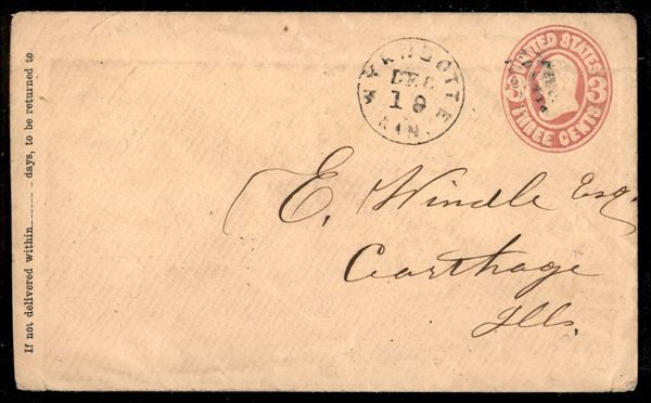 Busta postale da 3 cent del 19.12.1856 da Wyandotte a Carthage