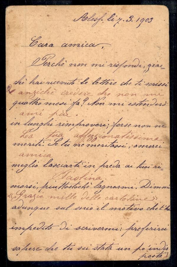 Cartolina postale da Alessandria a Roma del 7.3.1903