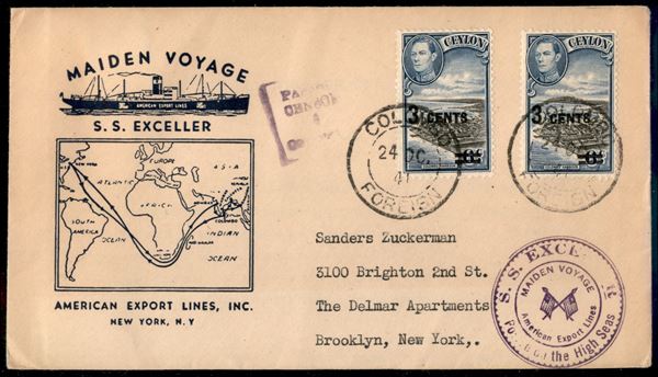 Ceylon - 1941 (24 ottobre) - Maiden Voyage S. S. Exceller - Colombo New York