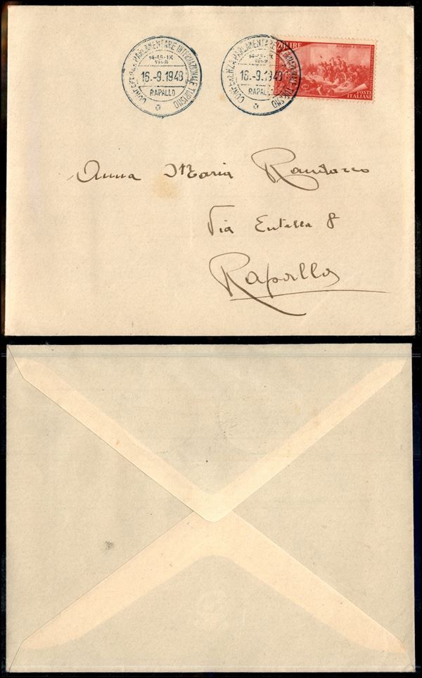 Conferenza Parlamentare Internazionale Turismo - Rapallo 16.9.43 - 20 lire Risorgimento (588) su busta per cittą