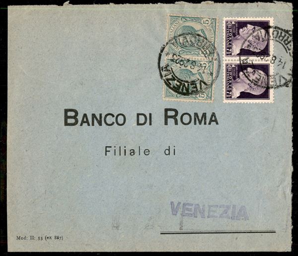 Coppia del 5 cent Leoni (81) + coppia del 35 cent Imperiale (250) - busta per cittą - Venezia 14.8.1929