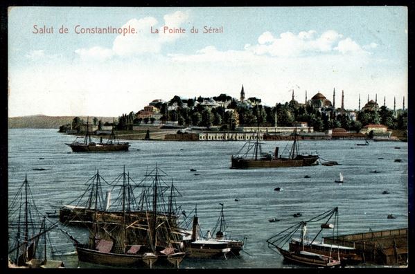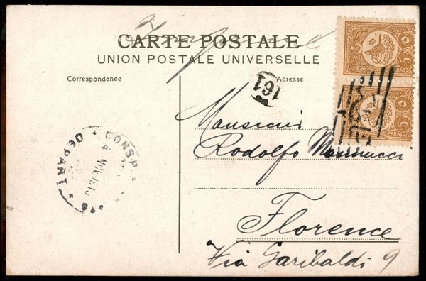 Coppia del 5 para (154) su cartolina da Costantinopoli a Firenze del 4.11.1910