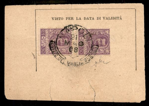 Coppia del 50 cent Floreale (76) su frammento di biglietto postale - Napoli 21.5.08