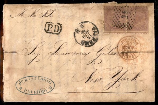 Coppia del 60 cent De La Rue (L21) - lettera da Palermo a New York del 13.8.66 - difetti - da esaminare
