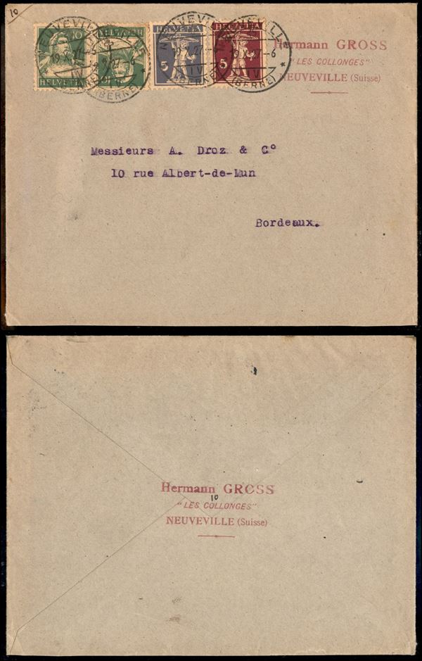 Coppia tete beche del 10 cent (203) + gemelli (163 + 200) - busta da Berna a Bordeaux del 19.10.27