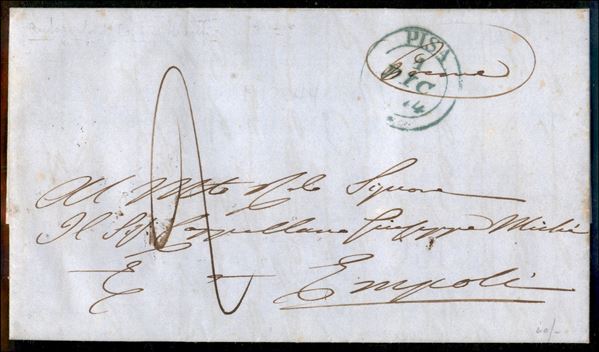 Cosimo Ridolfi - lettera autografa da Pisa (azzurro) a Empoli del 1.12.1844 (ultima data d'uso) - tassata