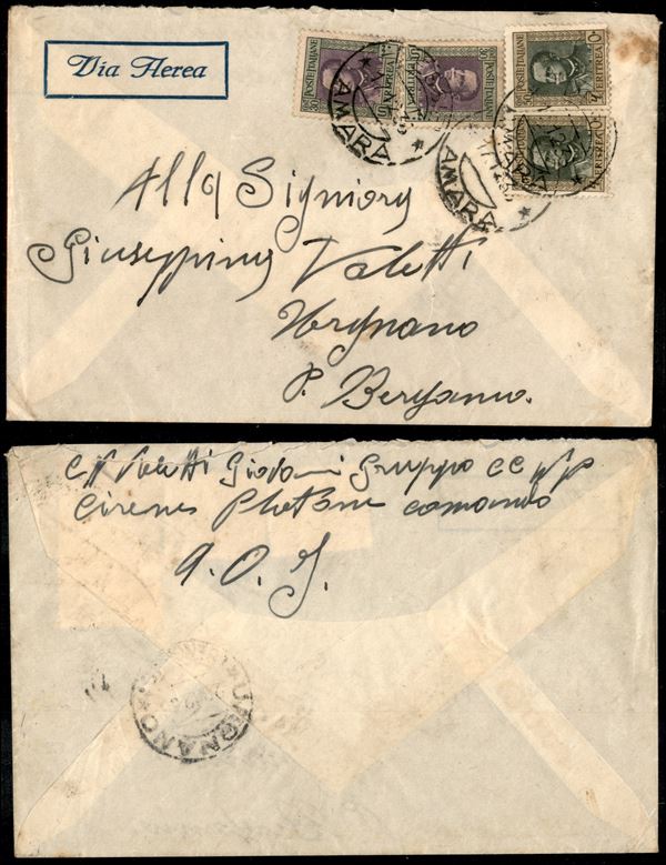 Dessič Amara - aerogramma per Bergamo del 17.12.36 (197 due + 199 due - Eritrea)