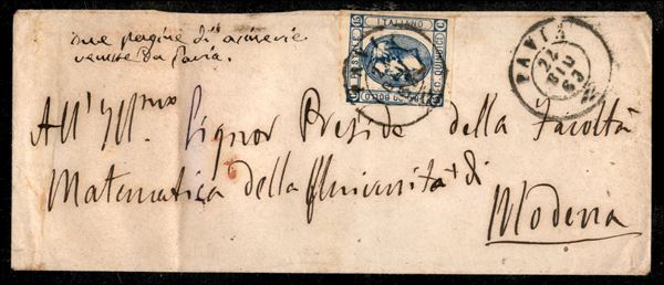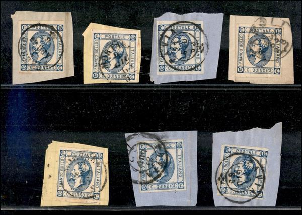 Due 15 cent (12) usati su frammenti + bustina con affrancatura singola da Pavia a Modena del 24.6.63 + cinque 15 cent (13) usati su frammento