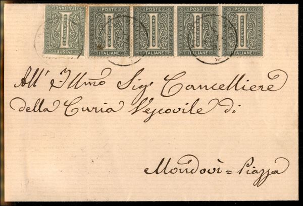 Due Colori - 1 cent (14) - singolo verde chiaro + verde scuro in striscia di quattro - lettera da Roburent a Mondovi del 14.9.70