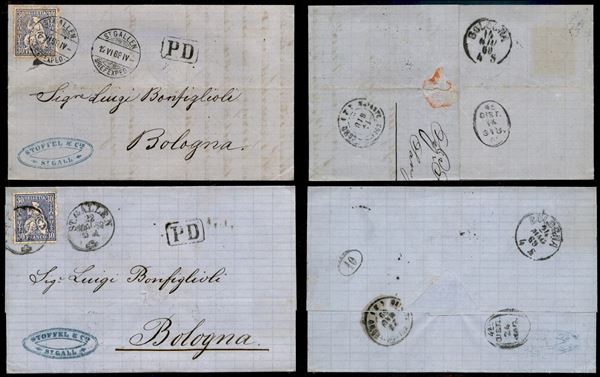Due lettere da St. Gallen a Bologna del 22/5 e 12/6 .69 col 30 cent (33)