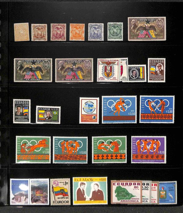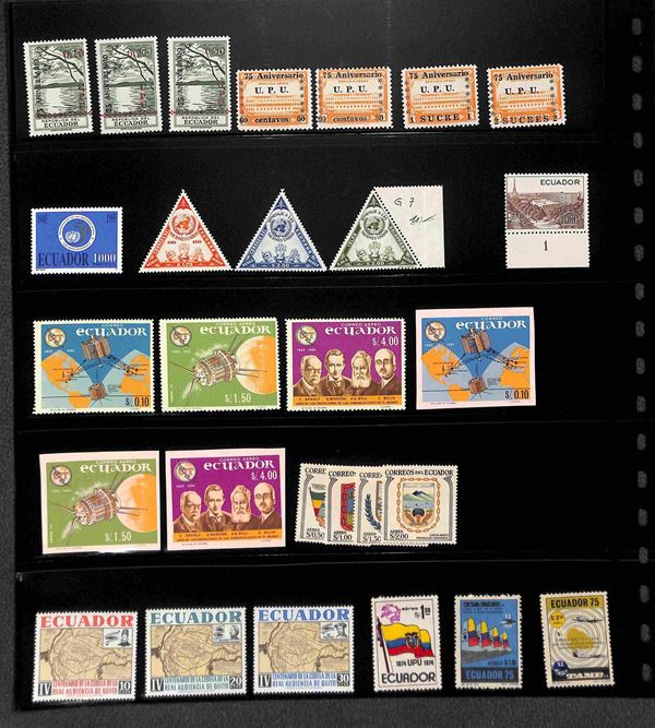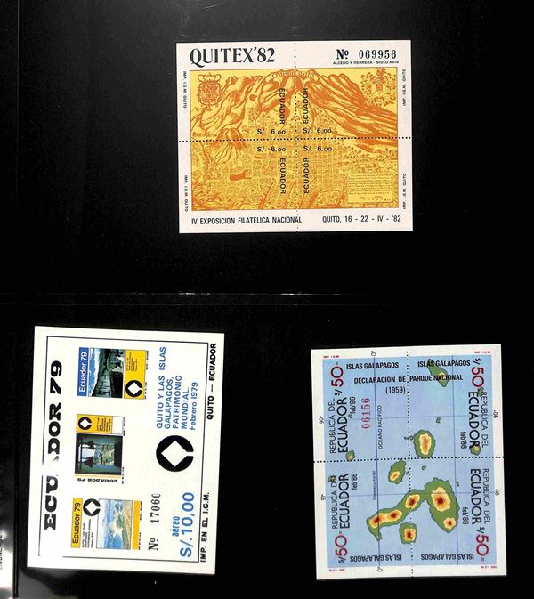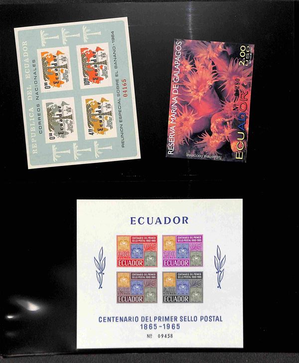 ECUADOR - 1865/2003 - Piccola collezione di valori serie complete e foglietti del periodo in 3 pagine di raccoglitore - gomma integra e originale