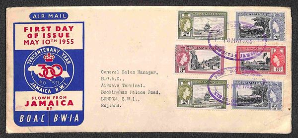 Elisabetta (157/160) - aerogramma FDC per Londra del 10.5.55 nel giorno d'emissione