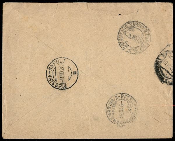 Espresso da Gioiosa Ionica a Napoli del 9.10.1926 con affrancatura quadricolore mista (185 + 200 + 205 + 11 Espressi)