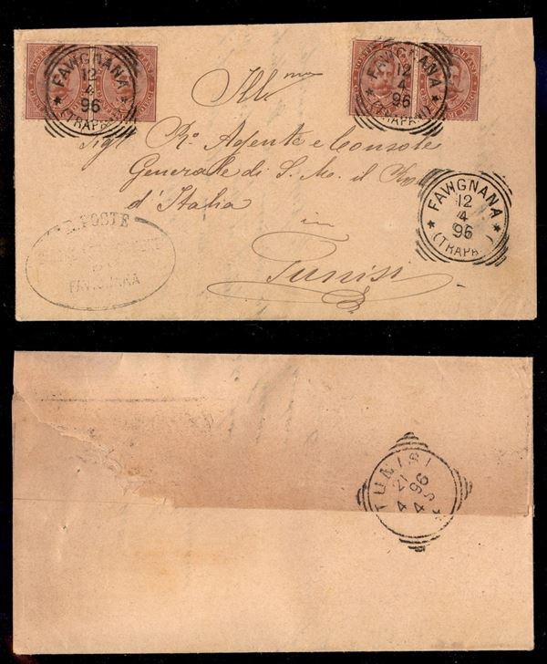 Favignana (Trapani) - due coppie del 10 cent (38) su piego per Tunisi del 12.4.96