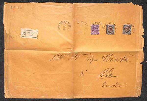 Floreale - 50 cent (76) + due 1 lira (77) - bustone raccomandato da Orzinuovi a Ala del 9.12.05 - un valore sportato