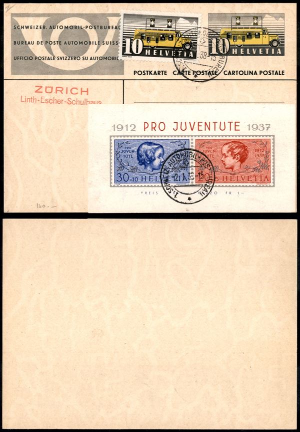 Foglietto Pro Juventute (Block 3) su cartolina postale da 10 cent (con gemello) da Zurigo del 2.1.38