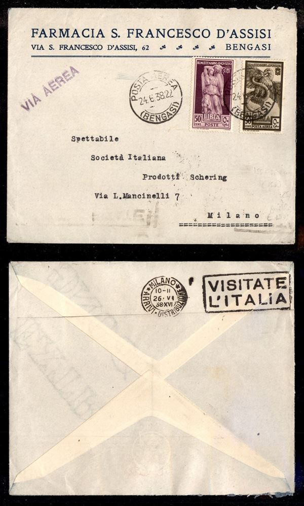 Gemelli - Augusto (155 + 36 Aerea) - busta da Bengasi a Milano del 24.6.38 (160)