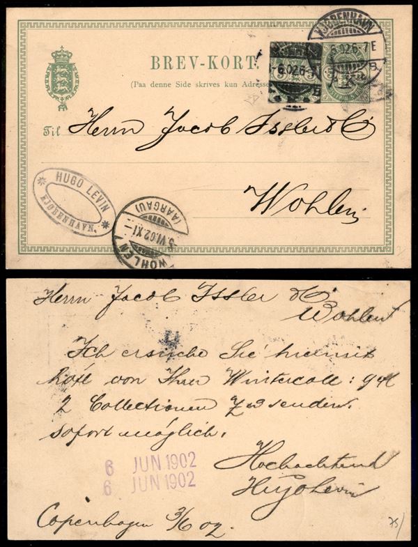 Gemelli - Ritaglio di intero postale su cartolina postale da Copenhagen a Wohlen del 3.6.02 - Diena