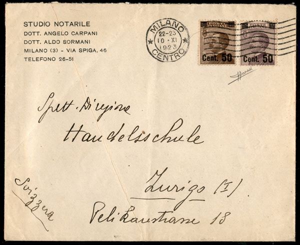 Gemelli (139 + 140) - busta da Milano a Zurigo del 10.9.23 - Sorani