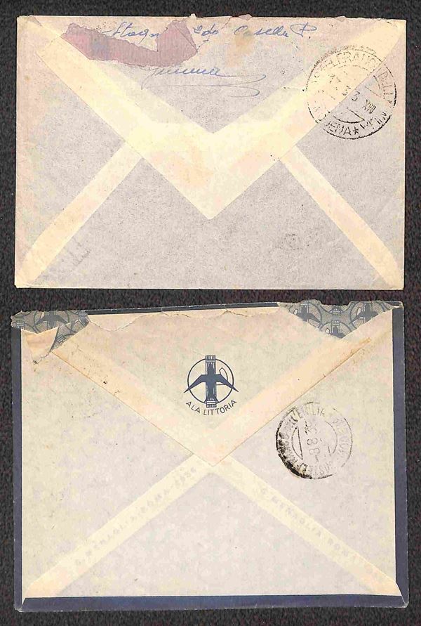 Gimma (P.ti 5) - due aereogrammi per Modena del 1939 con diverse affrancature (11 AOI + Somalia 21 Aerea - 223 + 18 Aerea Somalia)