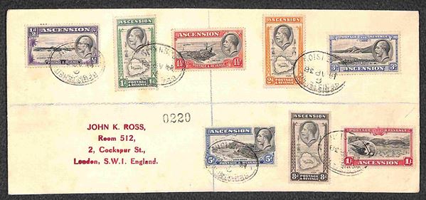 Giorgio V (22/29) - otto valori su raccomandata per Londra del 11.4.38