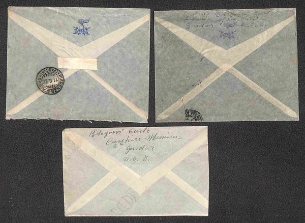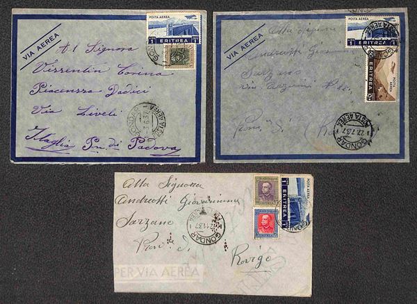 Gondar Posta Aerea (P.ti 6) - 1937 - sei aereogrammi per Padova e Rovigo con affrancature di Eritrea