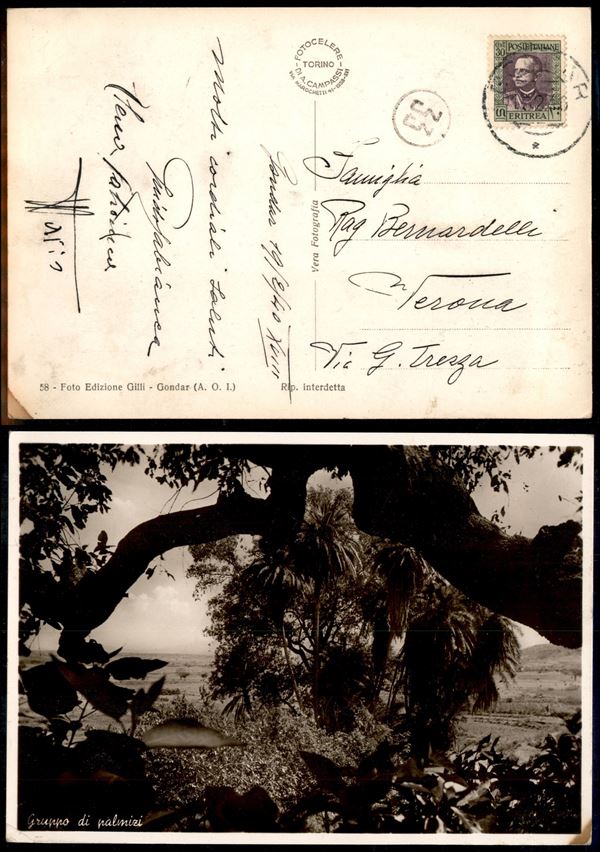 Gondar (verdastro) - 30 cent (197 - Eritrea) su cartolina per Verona del 19.2.40